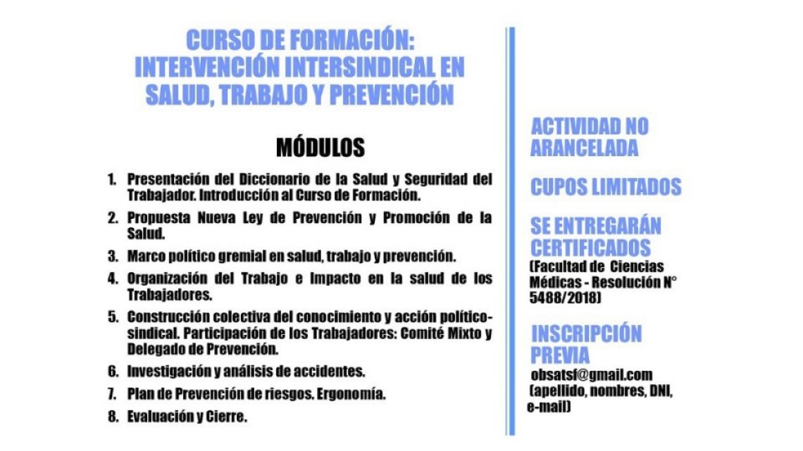 CURSO DE FORMACIÓN: INTERVENCIÓN INTERSINDICAL EN SALUD, TRABAJO Y PREVENCIÓN